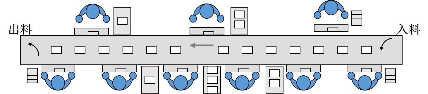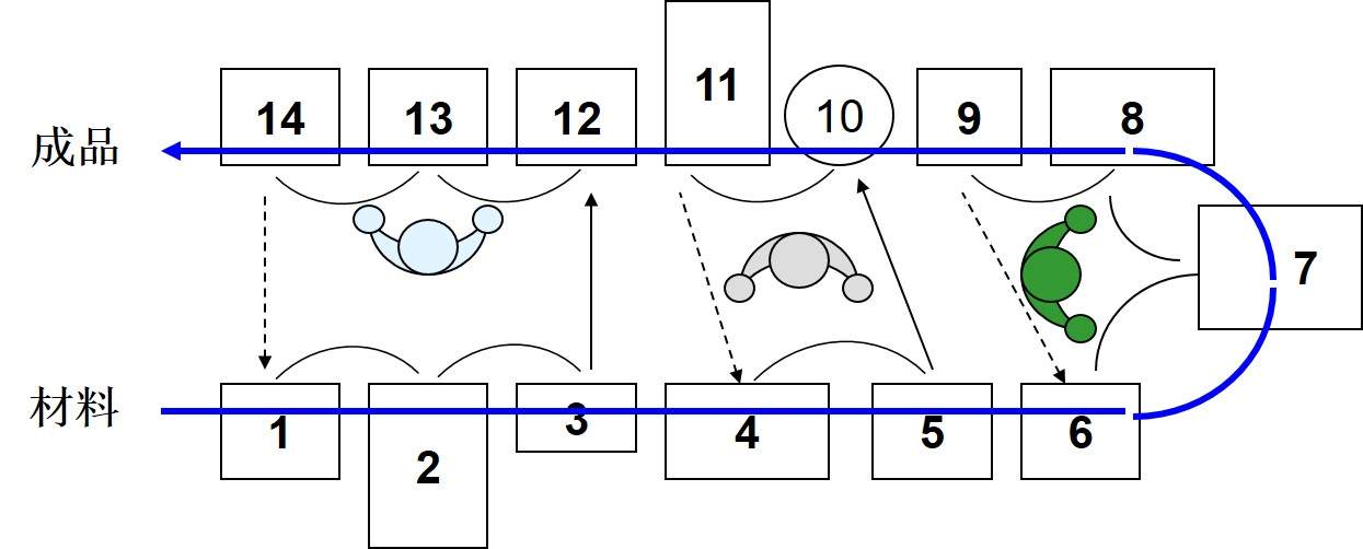 單元化生產(chǎn)布局,是精益生產(chǎn)的一個(gè)模塊,是當(dāng)代最新、最有效的生產(chǎn)線設(shè)置方式之一,為日本以及歐美企業(yè)所廣泛采用。這種方式使得小批多種生產(chǎn)殘酷環(huán)境下的生產(chǎn)線幾乎比流水線效果還好,因此被譽(yù)為“看不見的傳送帶”。