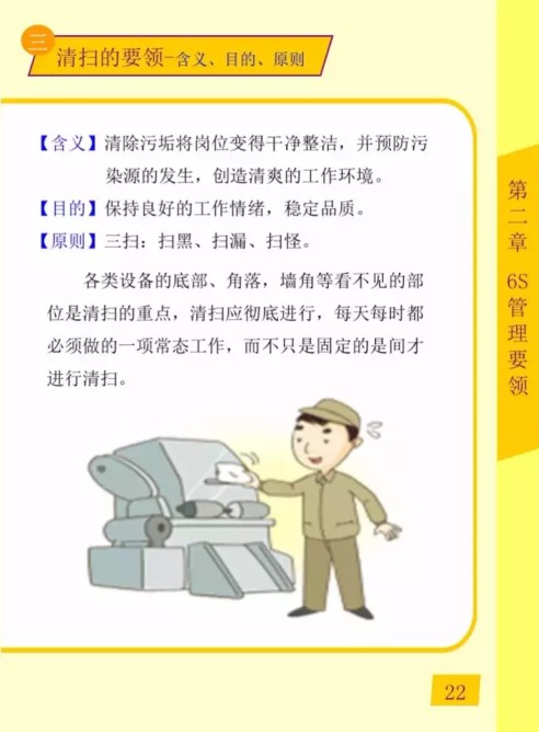 6S管理清掃之要領(lǐng):產(chǎn)品品質(zhì)的優(yōu)或差與組織的清潔有著相當(dāng)密切的關(guān)系,在一般的印象中,“清掃”就是用掃把掃掃地、用抹布接試機(jī)器即可。