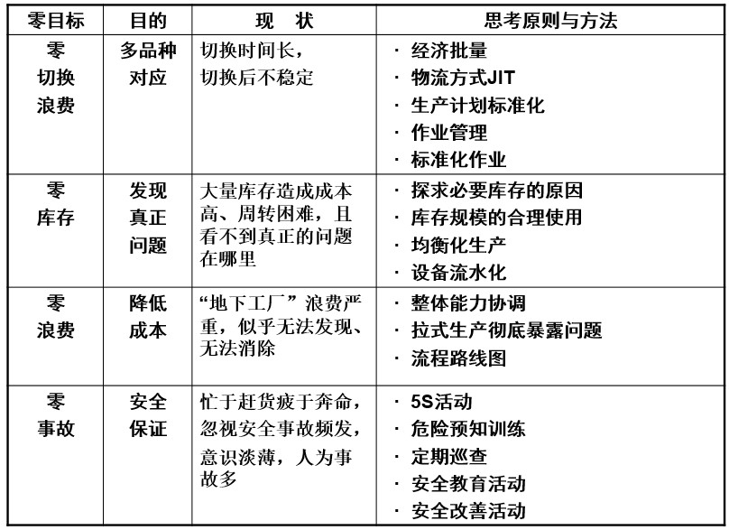 精益生產(chǎn)追求的目標7個“零”目標: