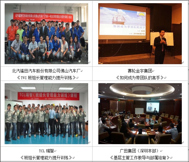 《卓越班組長(zhǎng)綜合能力提升》(6期) 《TWI一線班組長(zhǎng)能力訓(xùn)練》(4期) 《TQM全面質(zhì)量管理》(4期) 《五型班組長(zhǎng)建設(shè)》(4期) |
