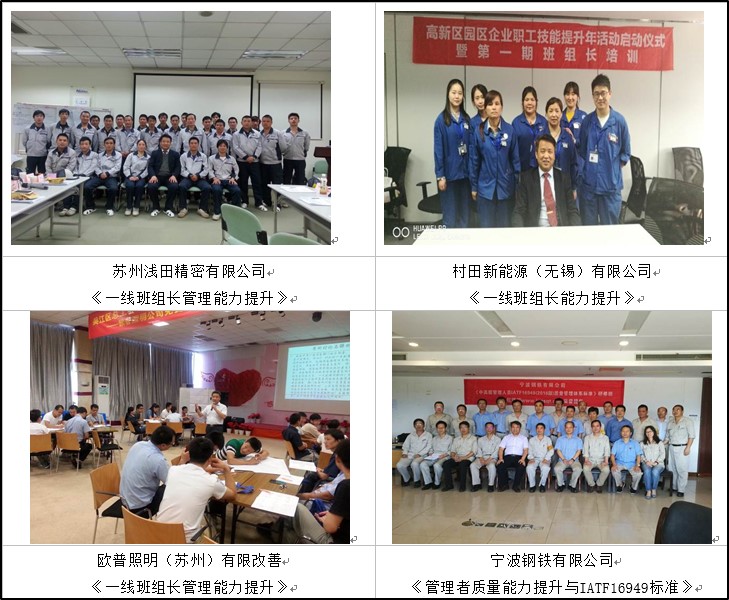 先后被松下集團(tuán),索尼集團(tuán),大金集團(tuán),三星集團(tuán),中石油,云南紅塔集團(tuán),中國(guó)移動(dòng),中國(guó)電信,中國(guó)郵政,江南造船廠,海爾集團(tuán),格力集團(tuán),長(zhǎng)春一汽,東風(fēng)股份,昆明鋼鐵集團(tuán),鹽城鋼鐵集團(tuán),寧波鋼鐵集團(tuán),歐普照明,亨通集團(tuán),伊利集團(tuán),中鐵集團(tuán),神達(dá)電腦,陜西法斯特汽車,歐瑞康集團(tuán),江蘇紅豆集團(tuán)、波士登,海瀾之家等多家大企業(yè)返聘,其中單《現(xiàn)場(chǎng)班組長(zhǎng)管理能力提升實(shí)務(wù)》課程,返聘高達(dá)70余次,好評(píng)率95%以上。