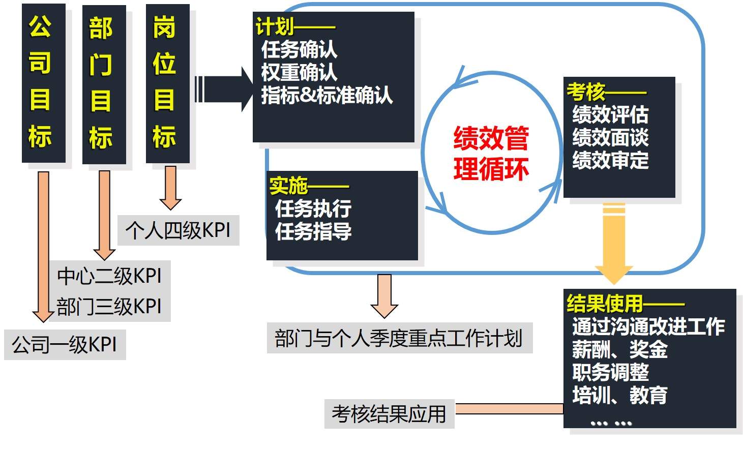 所謂績效管理,是指各級管理者和員工為了達(dá)到組織目標(biāo),共同參與的績效計劃制定、績效輔導(dǎo)溝通、績效考核評價、績效結(jié)果應(yīng)用、績效目標(biāo)提升的持續(xù)循環(huán)過程,績效管理的目的是持續(xù)提升個人、部門和組