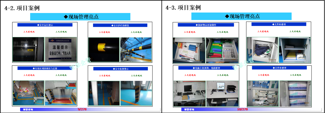我們管理咨詢:見效快!收費(fèi)低!咨詢項(xiàng)目100%落地!(樣板區(qū)三天見效,車間一周見效,全公司三個(gè)月見效)