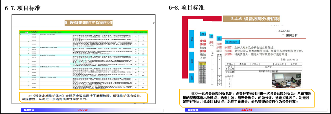 TPM 6 STEP是品質(zhì)保全活動(dòng):統(tǒng)合和優(yōu)化前期所有的管理表、點(diǎn)檢表和標(biāo)準(zhǔn)化內(nèi)容,制定和優(yōu)化故障和不良的再發(fā)防止措施,學(xué)會(huì)和利用品質(zhì)分析工具提升設(shè)備品質(zhì)能力,員工學(xué)會(huì)和運(yùn)用品質(zhì)管理工程圖。