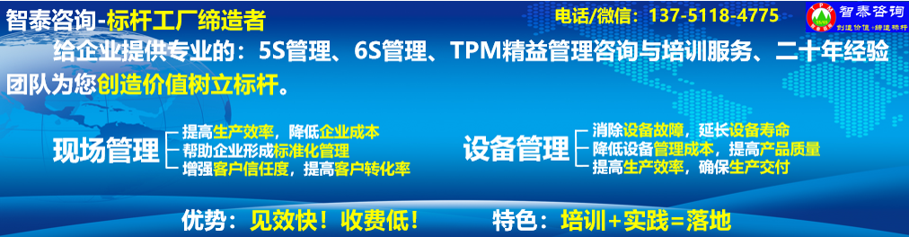 深圳智泰下屬6S咨詢公司在國內對不同行業(yè)推進6S管理,98%以上取得非常滿意的效果,智泰專業(yè)團隊三天為企業(yè)打造成功6~8個標桿車間。