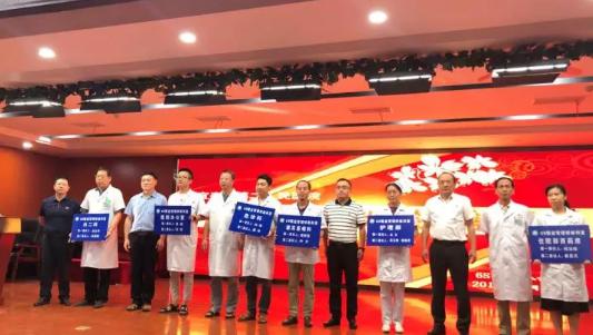 區(qū)衛(wèi)健委黨委委員唐劍華及院領(lǐng)導給6個樣板科室進行授牌。