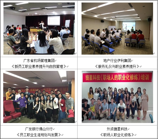 大型上市公司:碧桂園集團(tuán)、創(chuàng)維集團(tuán)、順豐速遞、歐派家居、得潤電子、宜信集團(tuán)、友誼集團(tuán)新員工職業(yè)化課程20期;