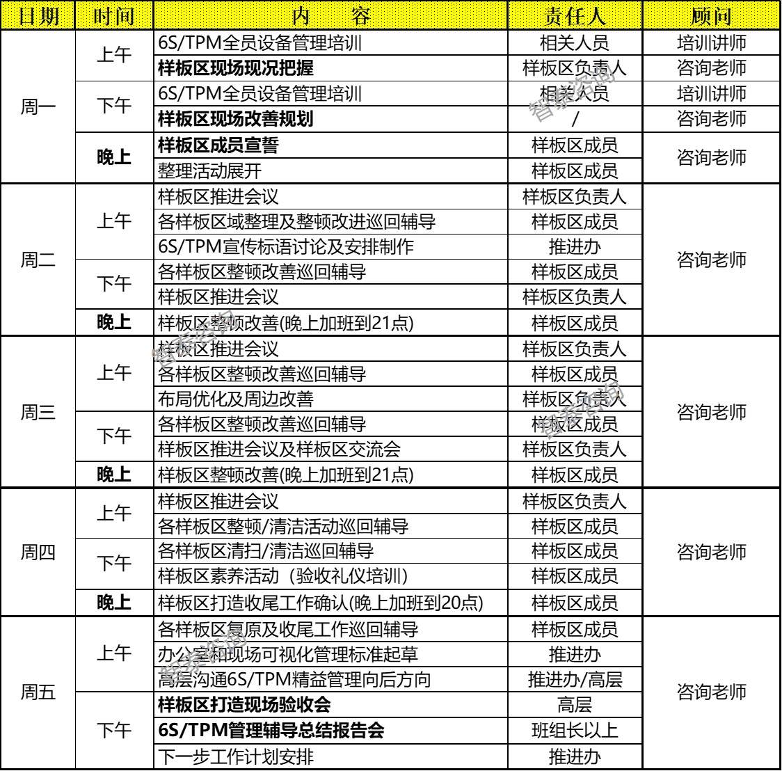 改善周訓(xùn)練營(yíng)實(shí)踐計(jì)劃: