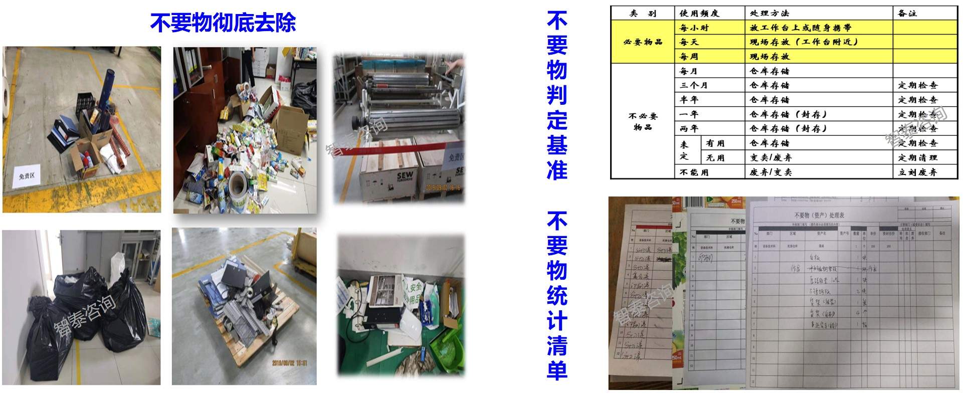 對(duì)各樣板區(qū)區(qū)域內(nèi)的物品進(jìn)行分類(lèi),徹底去除不要物