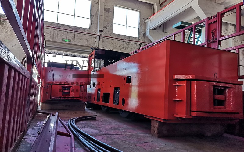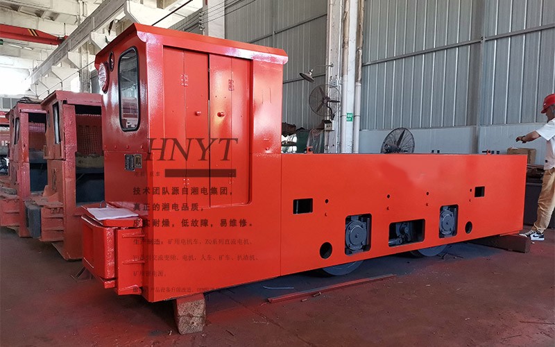 河南客戶采購的8噸礦用湘潭電機車裝車發(fā)貨。