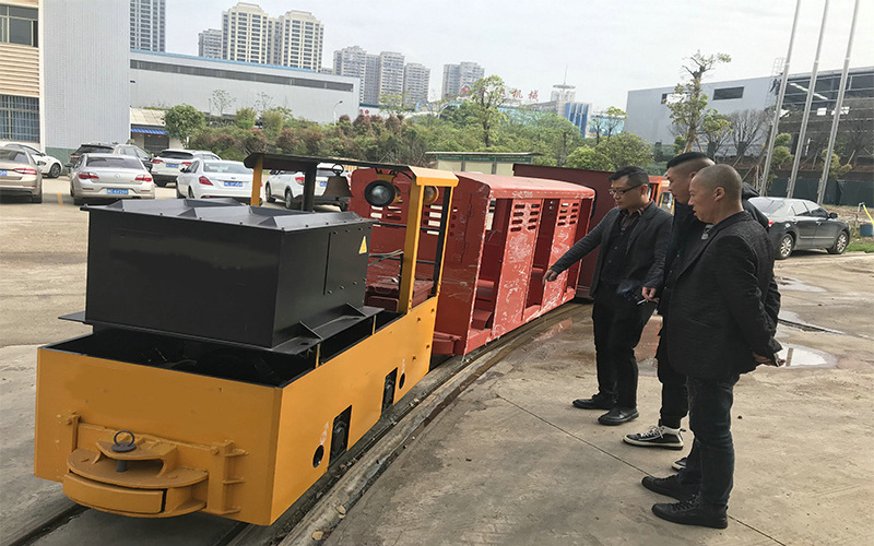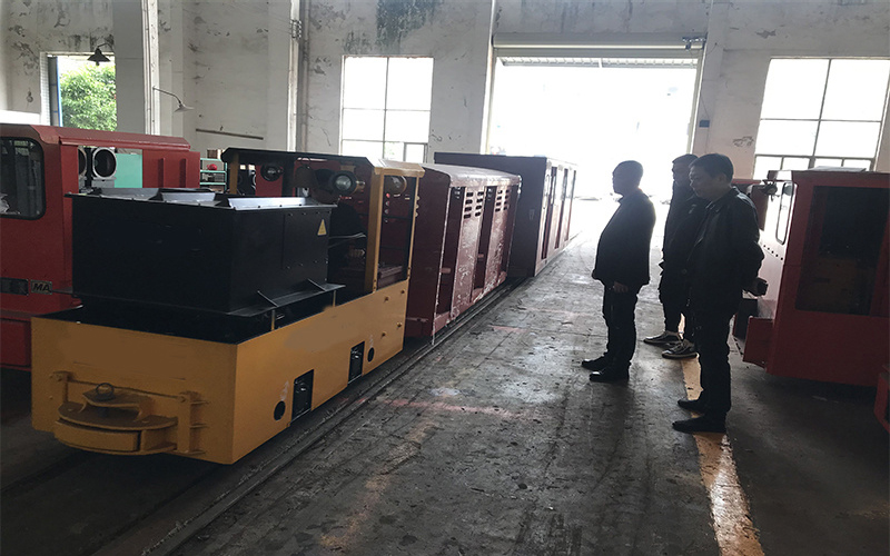 礬礦客戶來(lái)廠檢驗(yàn)定制的井下鋰電池湘潭電機(jī)車。