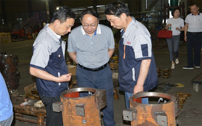 公司領導陪同孔和平社長一行參觀了生產車間,了解了礦用湘潭電機車、礦用牽引電機等礦山設備及配件的生產流程??缀推缴玳L充分肯定了公司的基礎制造能力、技術創(chuàng)新能力和產品研發(fā)能力。同時,他對公司智能產品的研發(fā)和推廣給予了高度認可。